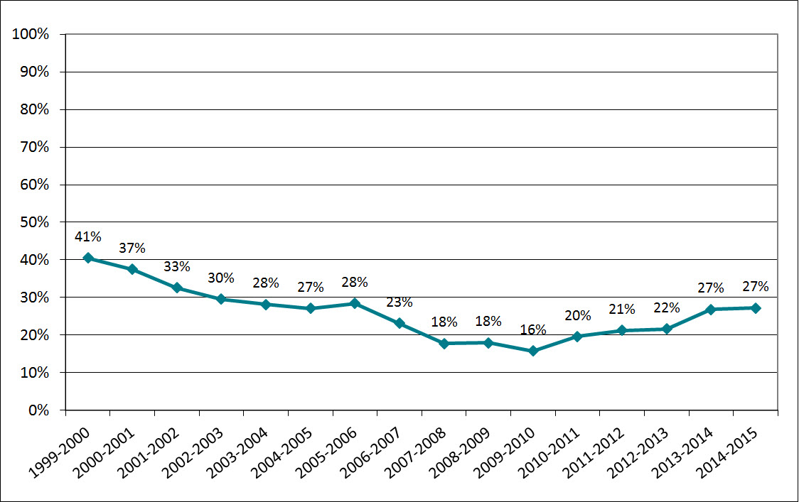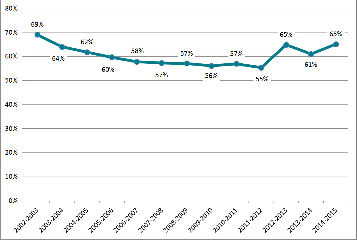 Figure 18 shows the total number of complaints registered by the OIC for each reporting period from 2002-2003 to 2014-2015.