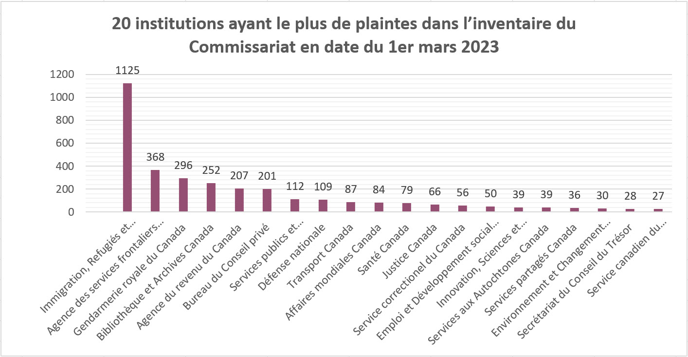 | 20 institutions ayant le plus de plaintes dans l’inventaire du Commissariat en date du 1er mars 2023 | |