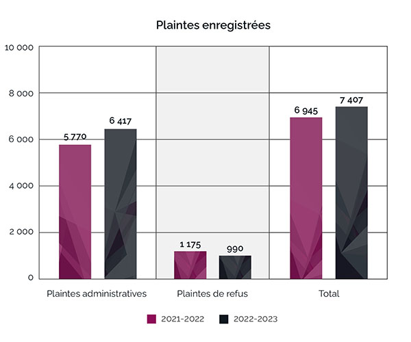 | Plaintes enregistrées | 2021-2022 | 2022-2023 |